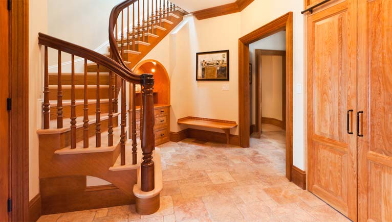 This home started life as the unbalanced product of a quick development. The house’s proportions were disjointed; details and the building materials were un-harmonious. But our client saw its potential; it had “good bones”. A thorough re-fitting with natural woodwork, stone, graceful stairways and elegant built-ins turned this spacious house into a gracious home.